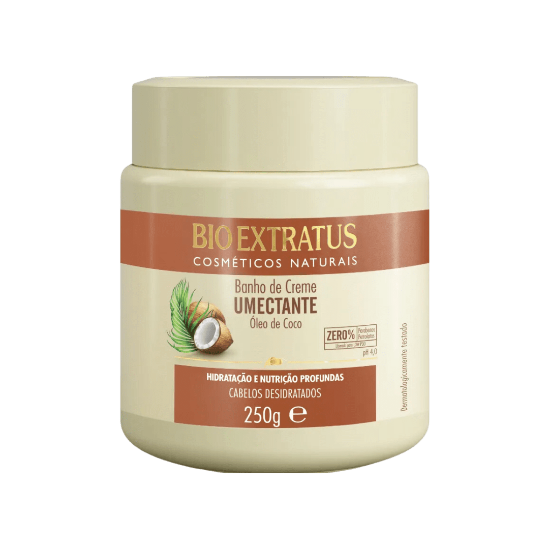 Máscara nutritiva desenvolvida para cabelos secos, ressecados e danificados. A Máscara Coco Bio Extratus promove hidratação profunda, nutrição intensa e restauração da maciez e do brilho natural dos fios.