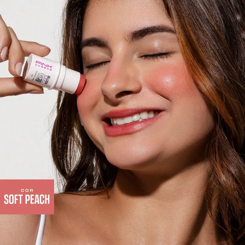 Blush multifuncional com proteção solar, desenvolvido para realçar a beleza da pele enquanto protege contra os danos do sol. O Blush All in One Pink Cheeks Soft Peach possui FPS 30 e FPUVA 10, oferecendo proteção diária contra raios UVA e UVB com um toque de cor natural.